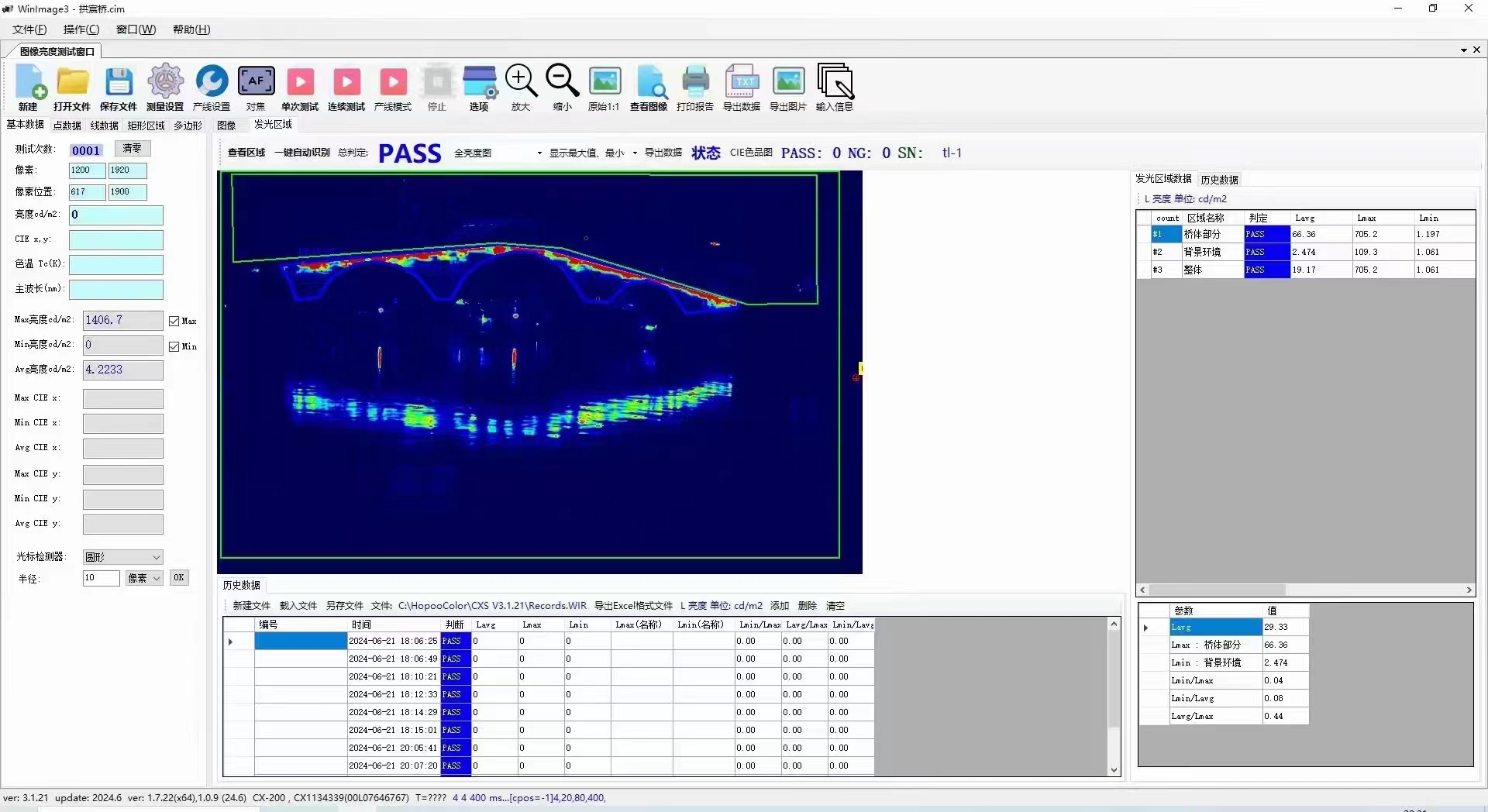 測(cè)試場(chǎng)景:杭州拱宸橋城市亮化工程亮度檢測(cè)。
